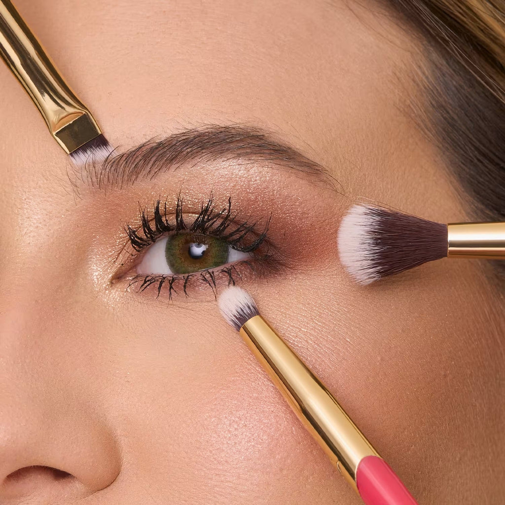 O kit de pincéis permite com que você aplique, esfume e crie linhas precisas com sombras e delineadores. Veja mais sobre cada um: