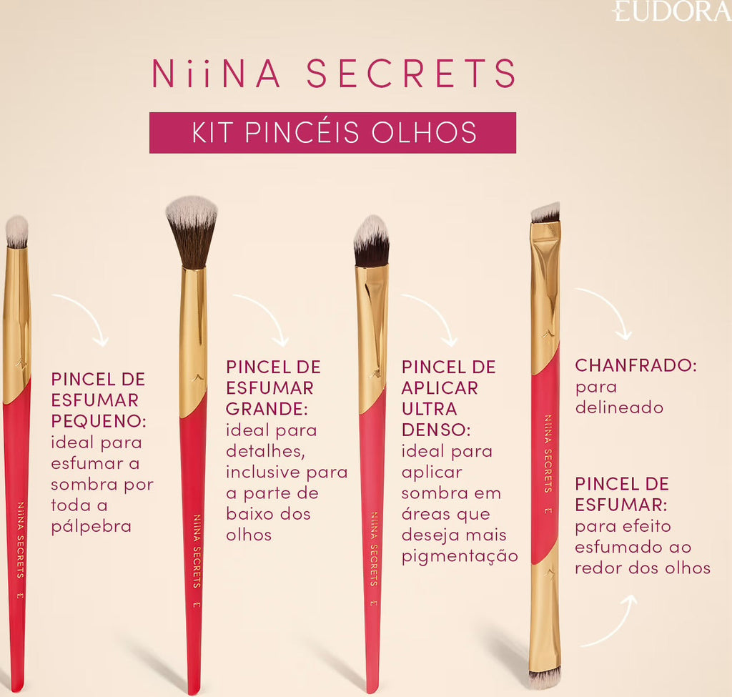 Kit Pinceis para Olhos Secret Pink Niina Secrets by Eudora