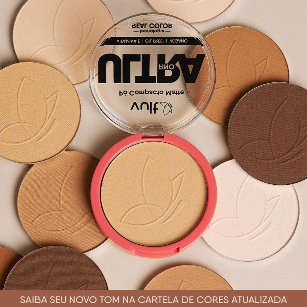 O pó compacto que você ama, agora de cara nova! Com 15% menos plástico, apresentamos uma nova embalagem, mas com a mesma fórmula vegana e incrível deste pó compacto Vult queridinho.