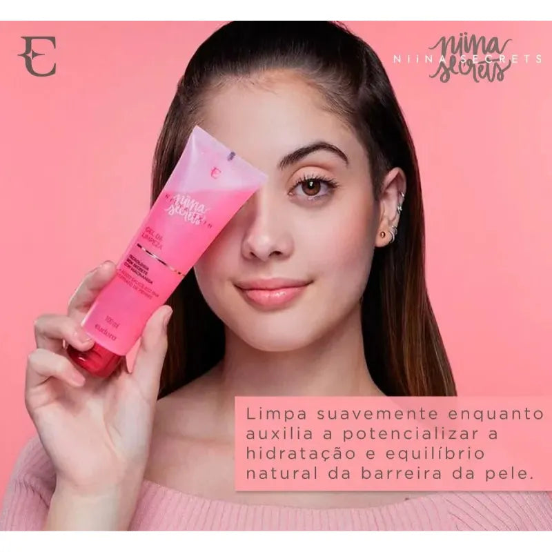 O GEL DE LIMPEZA EUDORA NIINA SKIN possui a exclusiva tecnologia Skin Secrets, que é um blend de ativos dermatológicos de alta eficácia: o Pentilenoglicol da cana-de-açúcar com a Niacinamida, juntos, auxiliam a potencializar a hidratação e equilíbrio natural da barreira da pele. O GEL DE LIMPEZA de Niina Skin combina essa potente tecnologia com Ácido Salicílico, um poderoso adstringente indicado para peles com acne, e Extrato de pepino, garantindo uma pele profundamente limpa e fresca.